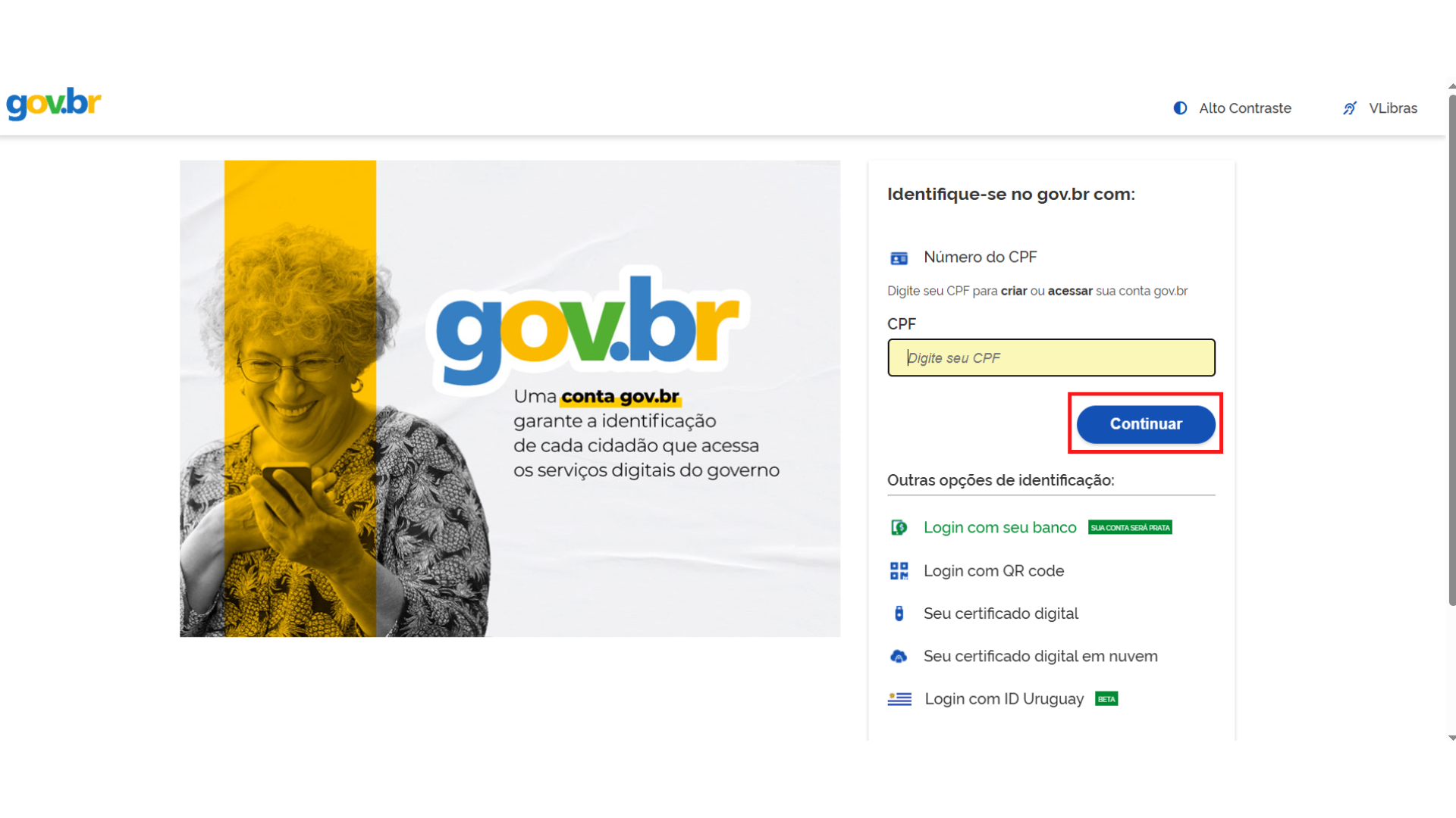 1. Acesse o “Minha Área” com seu login e senha do “Gov.br.” Após o login, você será direcionado à tela inicial da plataforma.