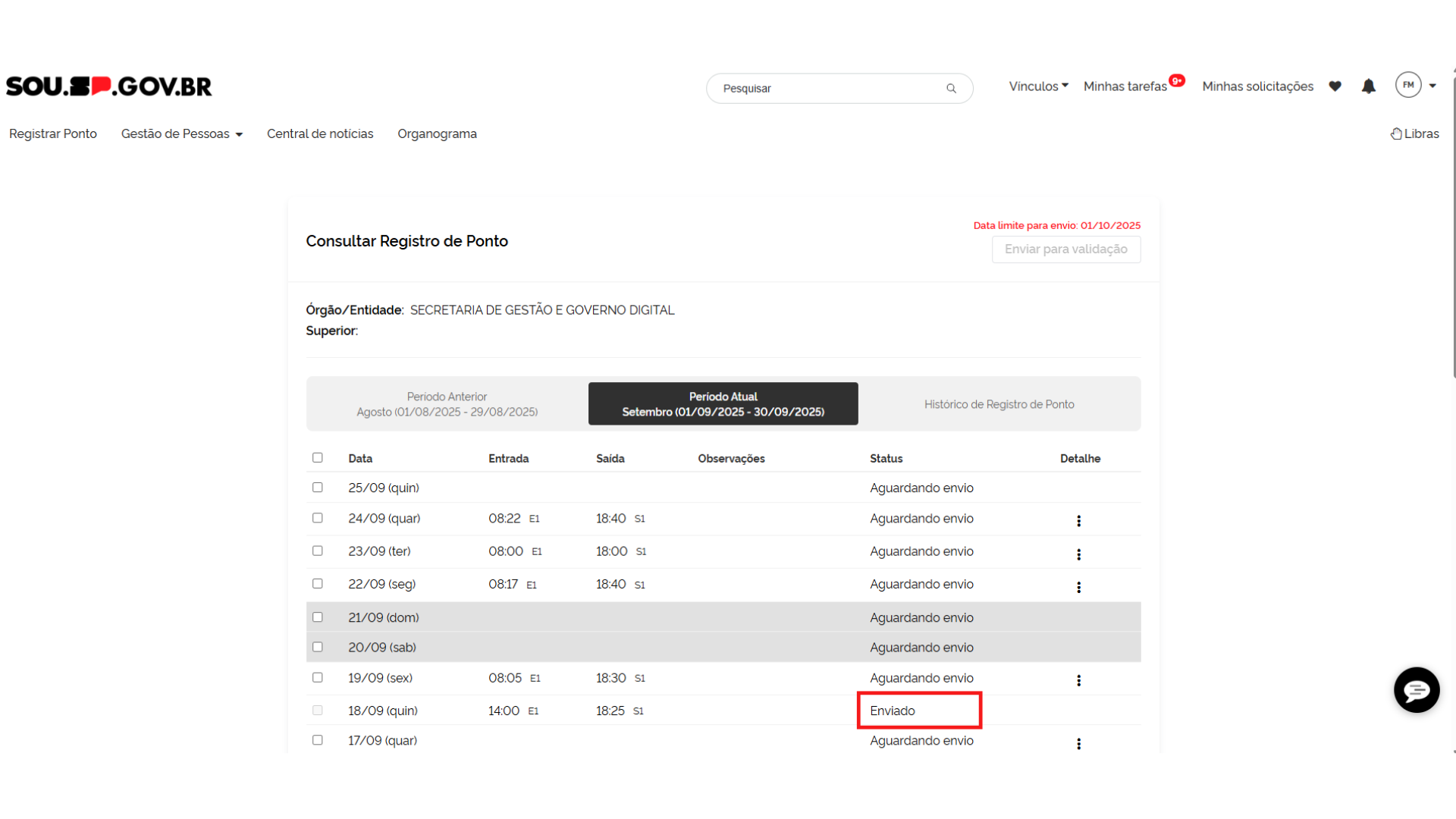 - Após o envio, acompanhe o status: se for rejeitado, será necessário ajustar novamente conforme orientação do gestor;