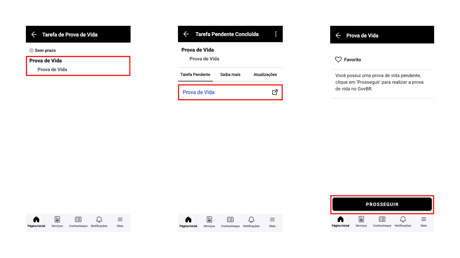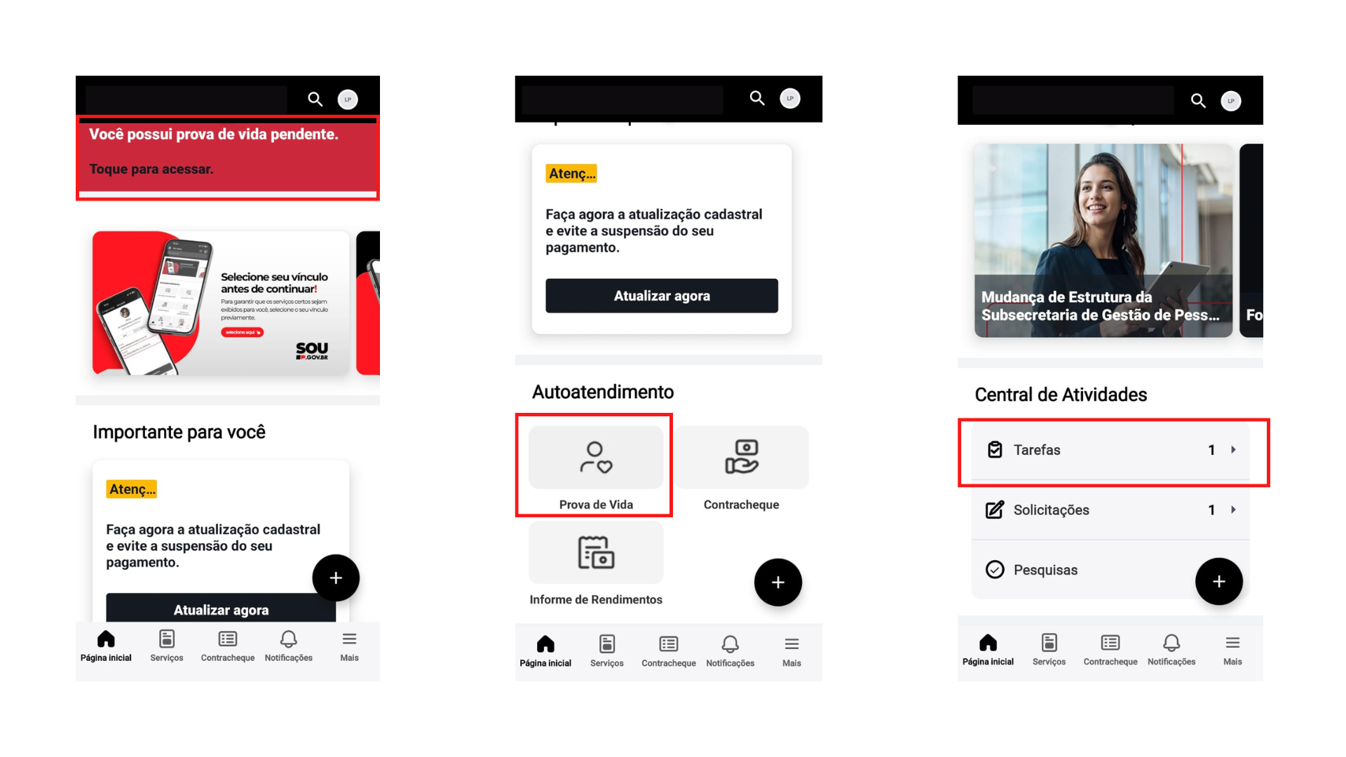 - Caso a opção não apareça em Tarefas Pendentes, vá em Autoatendimento > Prova de Vida;