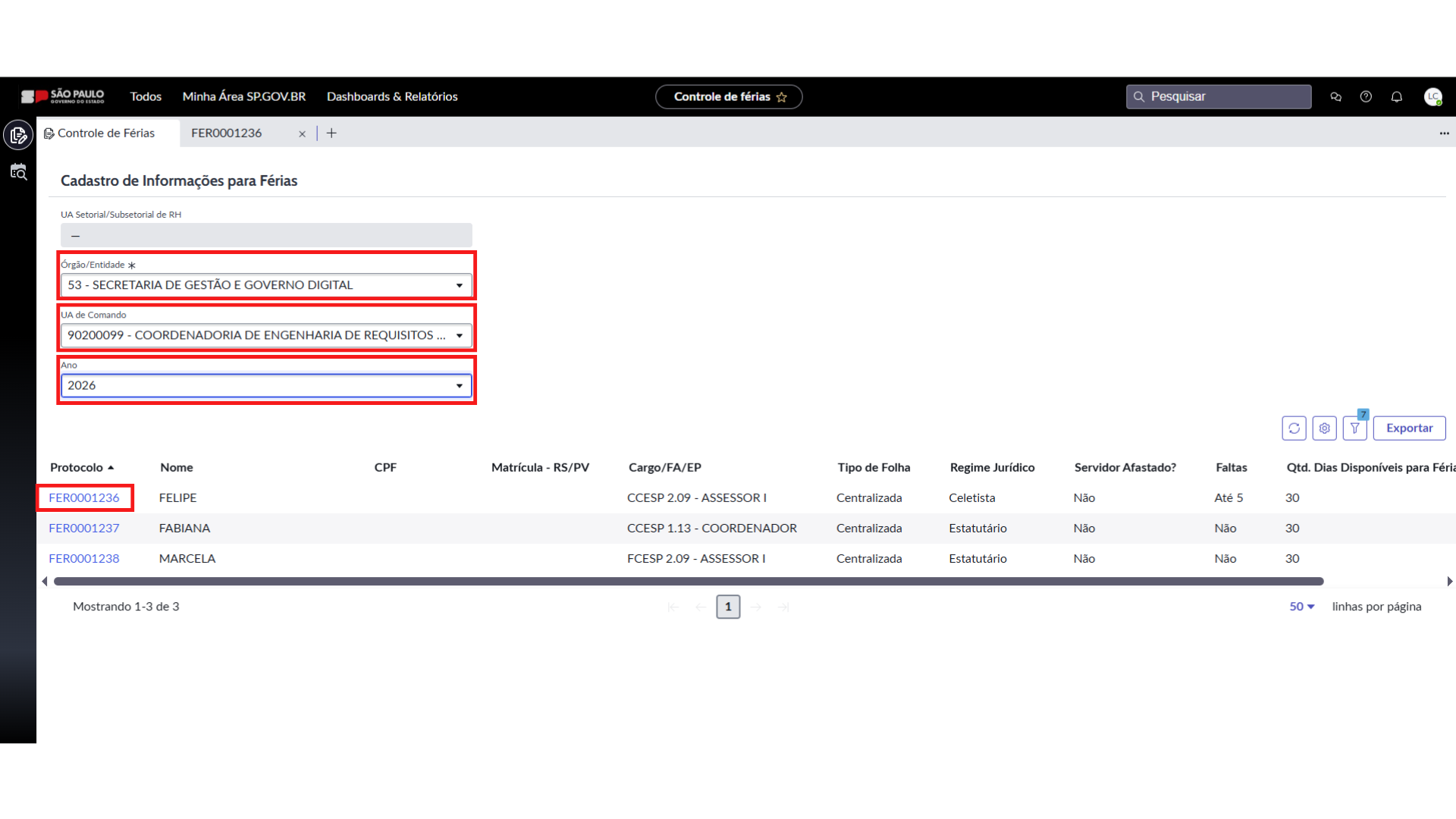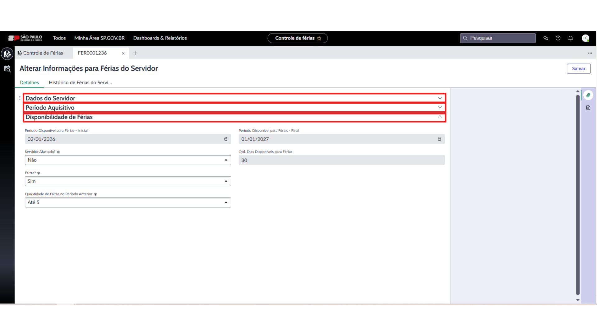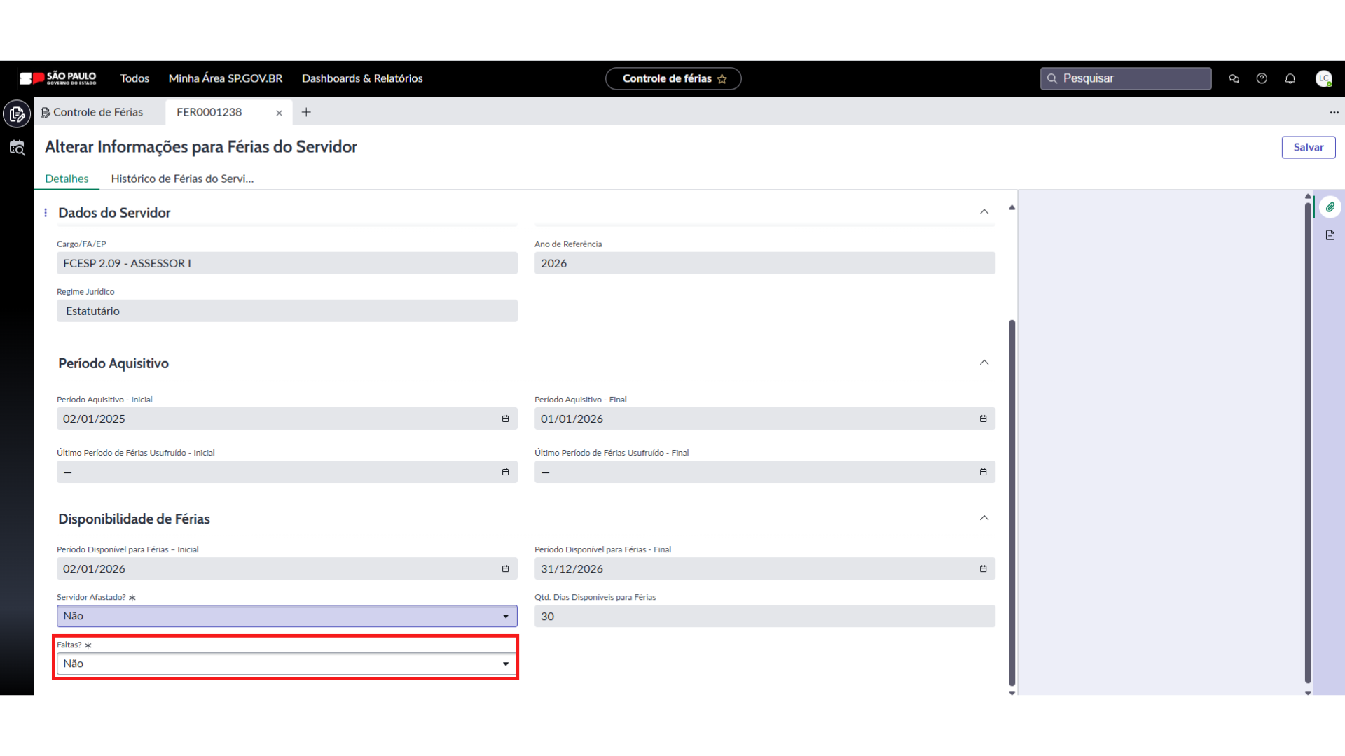 - Não, o sistema preenche automaticamente o campo “Qtd. Dias Disponíveis para Férias”, com a informação “30 dias de Férias”.