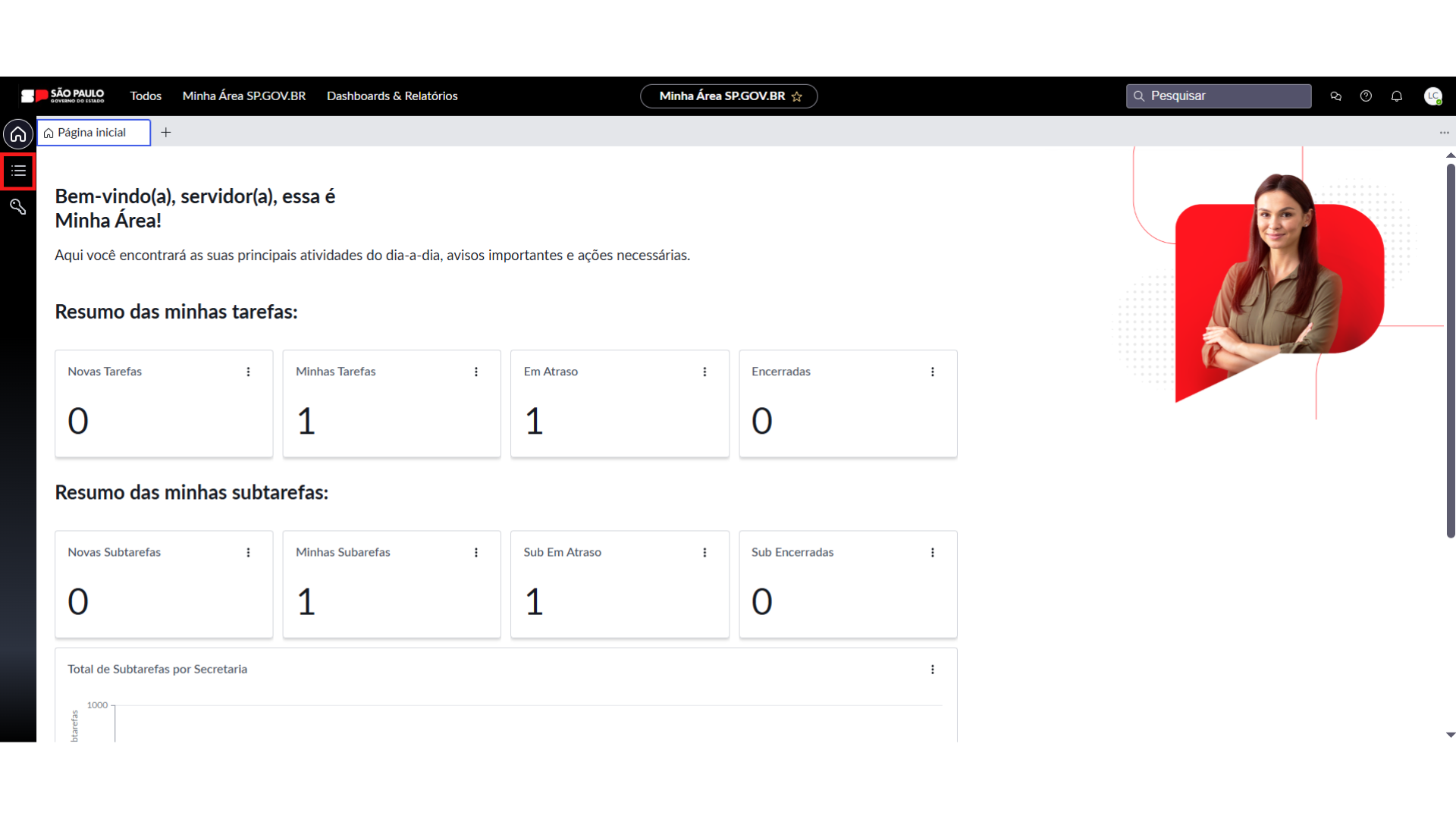1. Acesse o “Minha Área” com seu login e senha do “Gov.br.” Após o login, você será direcionado à tela inicial da plataforma.