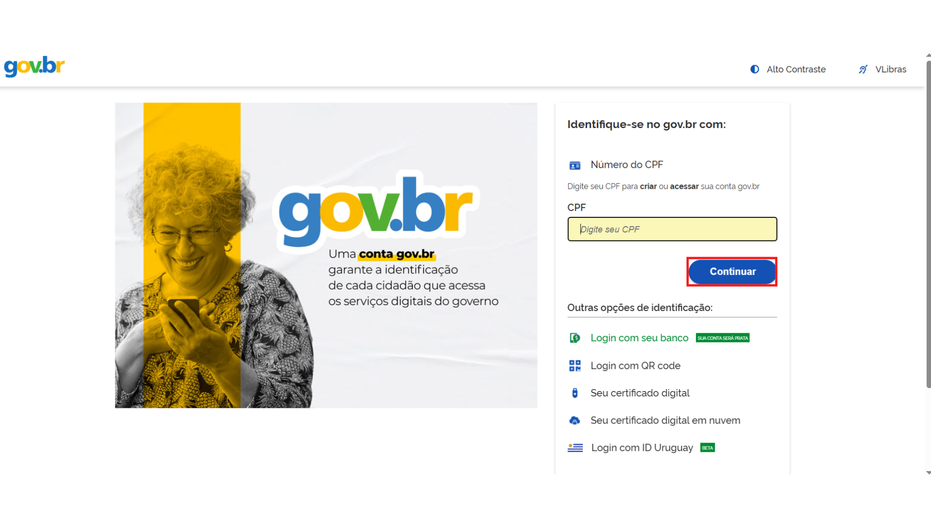 1. Acesse o “Minha Área” com seu login e senha do “Gov.br.”