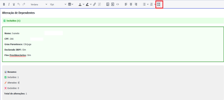 9. Conferir se houveram alterações solicitadas pelo servidor e se houve documento anexado. Fechar o expansor de tela quando concluir.